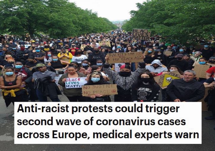 Cachia, A. (2020) Anti-racist protests could trigger second wave of coronavirus cases across Europe, medical experts warn. Daily Mail [Online], 11 June. Available from: <https://www.dailymail.co.uk/news/article-8411319/Anti-racist-protests-trigger-second-wave-coronavirus-Europe-medical-experts-warn.html> [Accessed 13 June 2020].